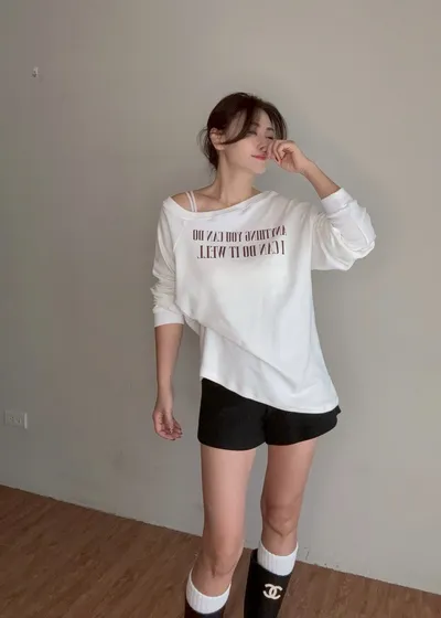 超柔軟純棉斜肩衛衣
