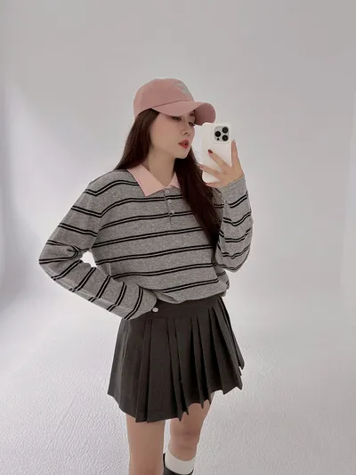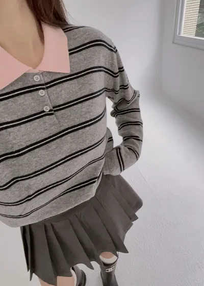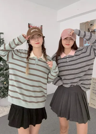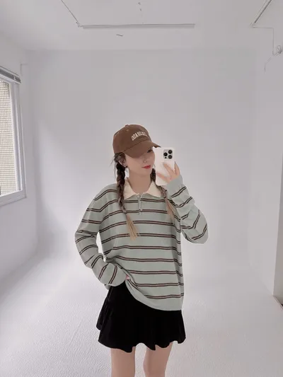 薄荷巧克力配色針織毛料衫